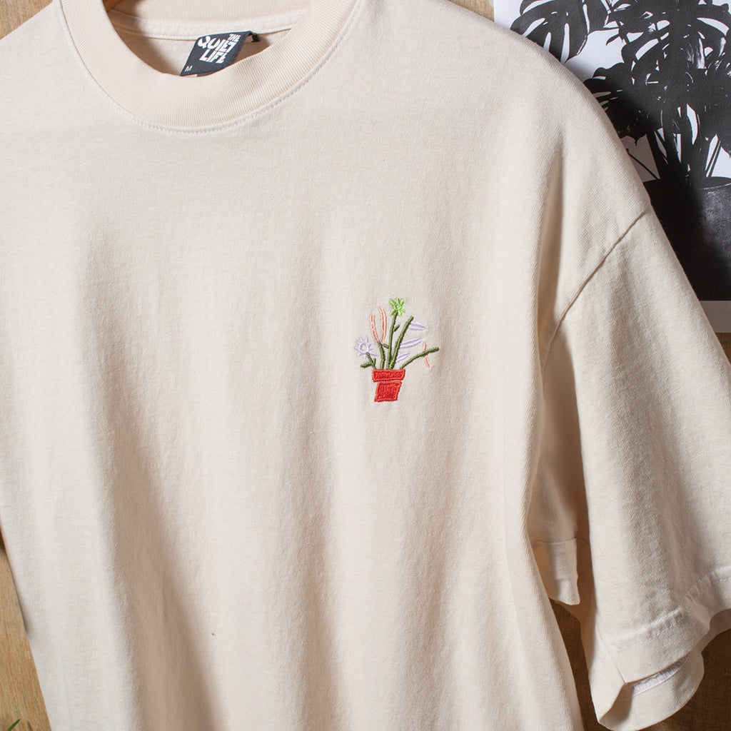 Plants Embroidered T - Cream